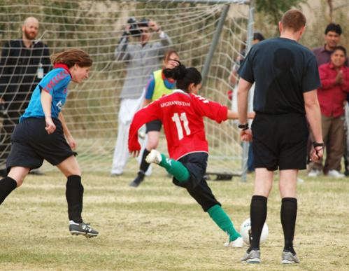 Gọi là trận đấu cho ra vẻ chứ thật ra thì đấy chỉ là một đội chia thành 2 phe để tập với nhau. Đó là ĐTQG Afghanistan - đội bóng đá nữ duy nhất tại đất nước này. Chế độ Taliban đã sụp đổ rồi, nhưng không vì thế mà phụ nữ Afghanistan được phép chơi bóng. Trên lý thuyết, họ không bị pháp luật cấm cản, và đấy là lý do duy nhất để đội tuyển nữ Afghanistan tồn tại. Còn trên thực tế, người ta lập tức giải tán buổi tập của ĐTQG, trớ trêu thay, vì chính sự an toàn của các cầu thủ. Phụ nữ muốn tập chơi bóng, phải kiếm một xó nào đấy khuất, chứ đâu thể tập chơi bóng ngay tại trung tâm thủ đô Kabul, trước mắt bàn dân thiên hạ! Dân chúng mà thấy phụ nữ chơi bóng thì hậu quả nhẹ nhất là bị dọa giết (“dọa” hãy còn là nhẹ)!