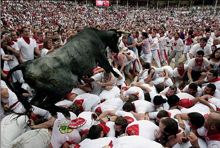 Hãi hùng cảnh bò tót bò giẫm đạp, húc ngã khán giả