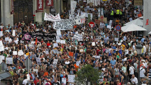 Phóng viên BBC Sarah Rainsford tường thuật từ Madrid rằng căng thẳng gia tăng khi những người biểu tình cố gắng vượt qua Quảng trường Sol, nơi đã diễn ra và cũng là biểu tượng của các cuộc biểu tình đông đảo trong nhiều tháng để phản đối tình trạng thất nghiệp và các biện pháp thắt lưng buộc bụng.