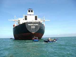 Nhưng không chỉ Sông Gianh là con tàu duy nhất của Vinalines bị “bỏ hoang”. Sáng 18/8, từ bến tàu cánh ngầm ở thành phố Vũng Tàu, chúng tôi thuê tàu “Masco 1” của cảng vụ Vũng Tàu, để ra tàu Vinashin Atlantic (chuyên chở dầu, tải trọng gần 150.000 DWT, được mua năm 2007, giá gần 910 tỉ đồng), đang nằm ngoài phao số 0, cách bờ biển Vũng Tàu gần 20 km. Sau gần 1 giờ, chúng tôi tiếp cận được con tàu đồ sộ dài gần 300 m, cao hơn 20 m. Vỏ tàu nơi giáp nước biển bị lớp hà bám dày đặc, dây neo nhiều chỗ bị hoen rỉ.