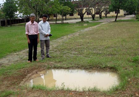 Lư giải về vấn đề "ngôi mộ" đào dở, thầy Ngọc cho biết, chúng tôi cũng không dám chắc là có ngôi mộ dưới đó hay không? Bởi ngay giữa sân thể dục đáng ra cỏ không thể mọc được nhất là lại về mùa hè khô nóng. Trong khi đó, một dải đất bằng chiếc chiếu cỏ vẫn mọc xanh tốt quanh năm.