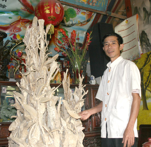 Ông Hoàng Văn Ngọc bên cây thạch mộc triệu đô la.