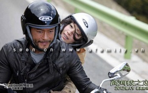 Trịnh Tú Văn "tình tứ" ôm eo Cổ Thiên Lạc trên mô tô