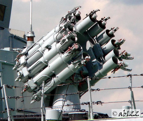 Lúc này, các ống phóng của RBU-6000 tạo với mặt boong tàu một góc 90 độ. Đây là góc bắn tối thiểu của tổ hợp bom-rocket này.
