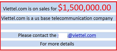 Tên miền Viettel.com bị rao bán với giá 1,5 triệu USD.