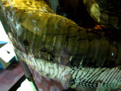 Con rắn chúa kỷ lục trưng bày tiêu bản ở trại rắn Đồng Tâm (Vĩnh Long) chỉ dài 4,5m.