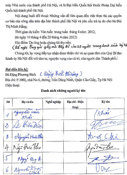 Đề nghị đối thoại với Bí thư Thành ủy Hà Nội