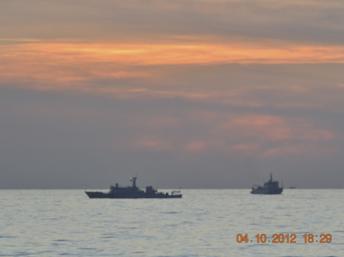 Hai tàu hải giám Trung Quốc ở gần Bãi cạn Scarborough, nơi có vụ đối đầu với tàu chiến Philippines đầu tháng Tư 2012. Reuters