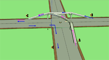 Ở ngã tư thì có bốn hướng rẽ trái mà sao vẽ mô hình chỉ có 1 hướng rẽ trái + cầu vượt chạy thẳng.