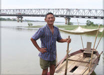 Trên chiếc thuyền câu neo đậu dưới cầu Bến Thủy.