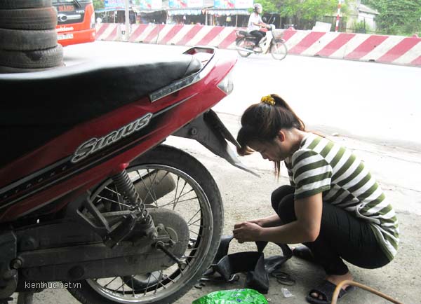 Ngỡ ngàng với kiều nữ 9x làm nghề vá xe
