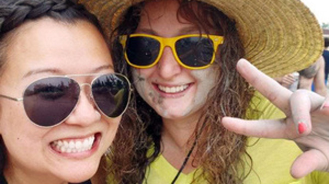 Cathy Huỳnh và cô bạn người Mỹ Karin chụp hình tại Hàn Quốc, khi cả hai đang là giáo viên dạy tiếng Anh - Ảnh: The Hamilton Spectator