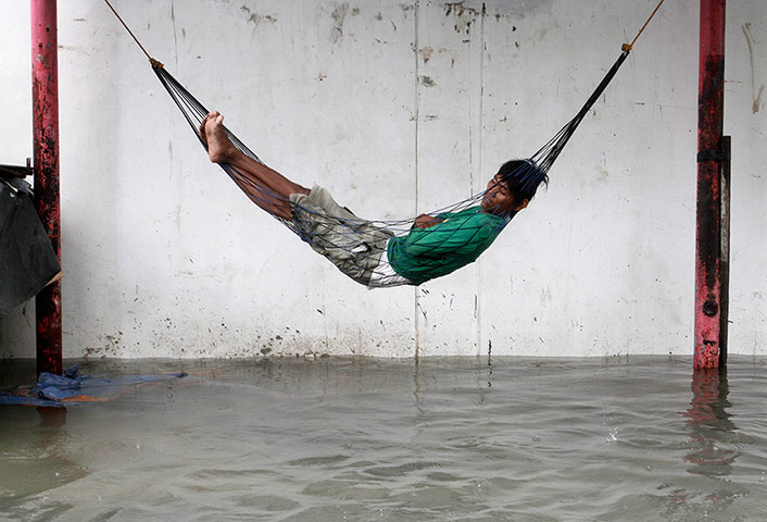 TG 24 giờ qua ảnh: Ngủ võng trên phố ngập nước