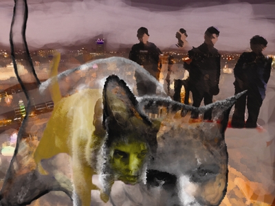 Tôi vừa bước đi trên hoang mạc chữ vừa thầm thì một mình. Kì thực tôi nhận ra mình đang nói chuyện với một con mèo không biết từ đâu đến. Nó đang đứng trước mặt tôi. Rất gần. Nhưng có gì đó thật khó xác định về khoảng cách. Con mèo trôi lơ lửng trên một phông nền đen kịt, giống như các nhân vật của nhà làm phim nọ.