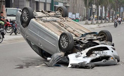 Ôtô Vios lật ngửa, hai người nguy kịch
