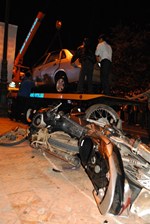 Ảnh: Xe con đâm nát một loạt xe máy rồi lao xuống hồ