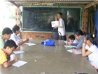 Thầy Lê Quốc Hưng dạy chữ cho các em học sinh nghèo.