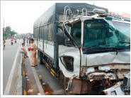 Xe tải gây tai nạn bẹp đầu, tài xế kịp nhảy khỏi cabin