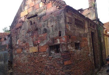 Tường nhà xây bằng tiểu sành và mảnh gốm