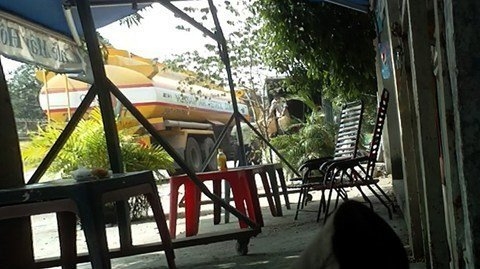 Khoảng 10g ngày 14/12, ông Dũng và người làm đang thay vỏ xe thì một xe bồn màu vàng ra ám hiệu bằng cách bấm còi hai lần, đánh xinhan tấp vào. Tài xế nhanh chóng xuống xe lôi hai can nhựa lớn thả xuống đường. Phước - người làm của ông Dũng - tiến lại xách hai can xăng đi, còn ông Dũng nhanh tay đưa hai can nhựa rỗng khác cho tài xế xe bồn. Thấy Phước để xăng bên ngoài, ông Dũng nhảy xuống xe, chạy lại kéo hai can xăng dúi vào giữa bụi cau trong lề đường.