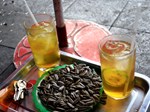 Chẳng cần phải giấu diếm, bà chủ quán lấy lên một can nước gì đó đen đen, rót ra cốc, cho vào mấy viên đá, tôi đưa lên miệng thì… ôi trời ơi, không thể uống nổi. Theo giải thích của bà chủ quán thì đó là trà chanh, loại đóng trong gói.