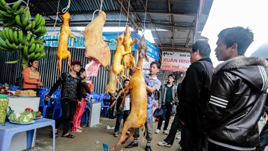 Đường lên chùa Hương vẫn c̣n nhiều hàng quán treo thịt thú rừng (ảnh: Tuổi trẻ)