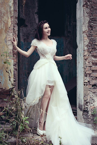 | Vài ngày trước, dư luận râm ran tin đồn Vy Oanh chuẩn bị lên xe hoa khi bộ ảnh cưới của cô được tung lên mạng. |