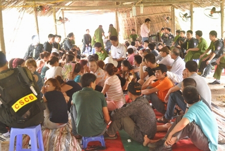 Khi cảnh sát ập vào, nhiều đối tượng dùng gậy và gạch, đá tấn công, hòng tìm cách tẩu thoát. Lực lượng chức năng buộc phải nổ 2 phát súng thị uy và bắt giữ hơn 10 đối tượng, cùng nhiều tang vật.