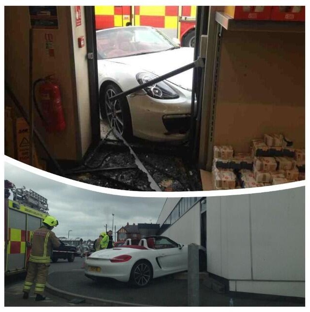 Siêu xe Porsche mới cứng đâm thẳng vào cửa thoát hiểm của siêu thị