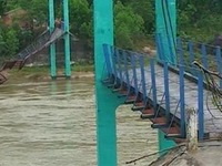 Đứt cầu treo, hàng chục người rơi xuống nước lũ