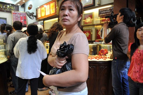 | Giá càng hạ, tiền trong túi những người đang giữ vàng càng "bốc hơi". Ảnh: Anh Quân |