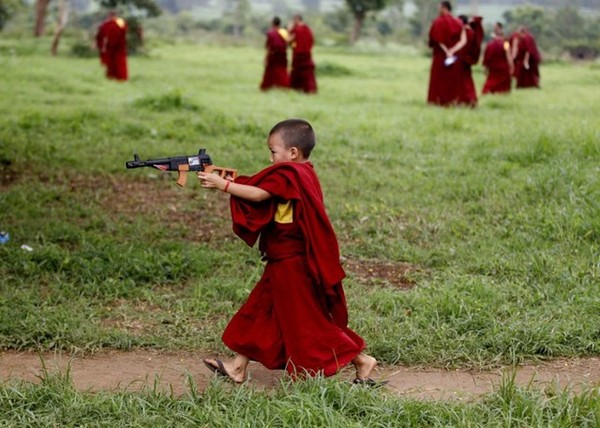 TG 24h qua ảnh: Chú tiểu say sưa chơi bắn súng