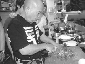 Mr Thìn và công đoạn xắt hành. (Ảnh: TT&VH)