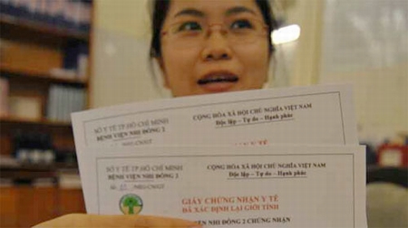 Trước đây, Bệnh viện Nhi Đồng 2 đă phẫu thuật cho nhiều trường hợp mơ hồ giới tính, giúp trẻ trở lại với giới tính thật. Tuy nhiên, sau phẫu thuật dù giới tính của trẻ đă thay đổi nhưng bệnh viện vẫn phải ghi giới tính theo giấy khai sinh. Từ ngày 1/7/2013, được sự cho phép của Bộ Y tế và Sở Y tế TP.HCM, bệnh viện sẽ cấp giấy chứng nhận y tế đă xác định lại giới tính cho trẻ.