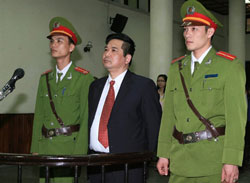 TS luật Cù Huy Hà Vũ ở phiên tòa xét xử tại Tòa Án Nhân Dân Hà Nội vào ngày 04 tháng 4 năm 2011. AFP PHOTO.