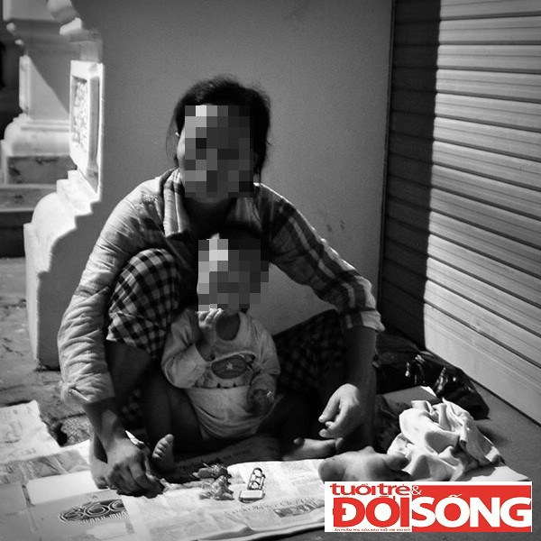 Ban ngày, có lúc mẹ con Tươi ngồi ở đây, có lúc Tươi cho cái Tư vào thùng xốp, trong thùng xốp có cả quần áo của hai mẹ con, cứ thế Tươi đạp xe đi khắp các ngơ ngách phố xá.