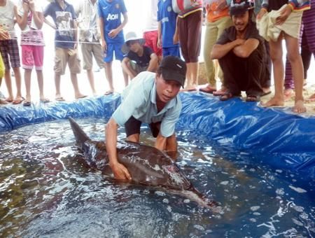 Dân mua đá lạnh chăm sóc cá heo dạt bờ