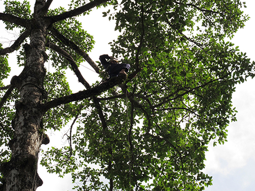 Chúng tôi theo chân anh em CN ra hiện trường. Hơn 11 giờ 45 phút, các CN mé cây (thuộc Công ty Công viên Cây xanh TP HCM) vẫn đang cưa những cành nhỏ, mục trên đường Nguyễn Thị Minh Khai (phường Bến Nghé, quận 1, TP HCM). Phía trên cao, 2 CN đang dùng cưa máy cắt cành. Giữa dòng xe cộ đông đúc, 3 CN khác từ từ kéo một đồng nghiệp vừa cưa cây từ trên cao xuống trước sự lo lắng của người dân xung quanh. Gần 12 giờ, nhóm CN mới hoàn tất công việc và thu gom dụng cụ. Uống vội ngụm nước, một CN cho biết chuyện làm quá trưa như thế này là bình thường. Chúng tôi hỏi thu nhập được bao nhiêu, anh cho biết mỗi tháng được 5 triệu đồng.