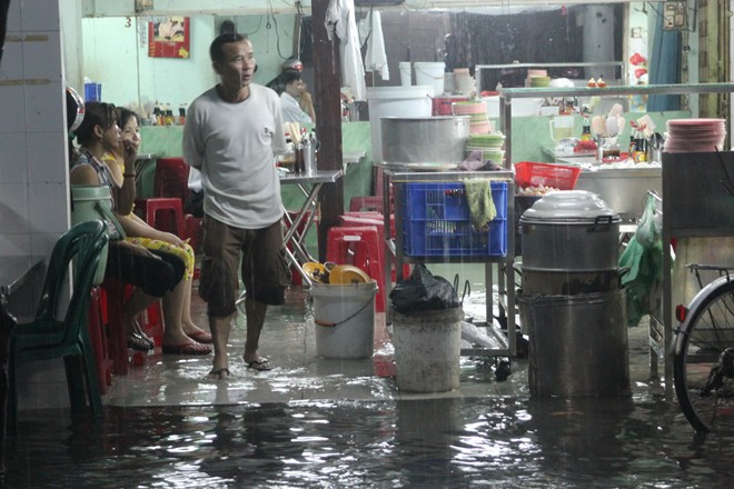 Clip người Sài Gòn ăn cơm giữa 'biển nước đen'