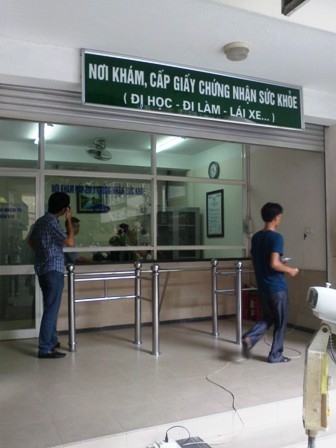 Quy tŕnh khám sức khỏe ở đây được thực hiện khá đơn giản: xuất tŕnh CMND, mua giấy khám rồi tự viết thông tin cá nhân. Nữ y tá bàn số 1A nh́n mặt người khám để nhận định sức khỏe “B́nh thường”.