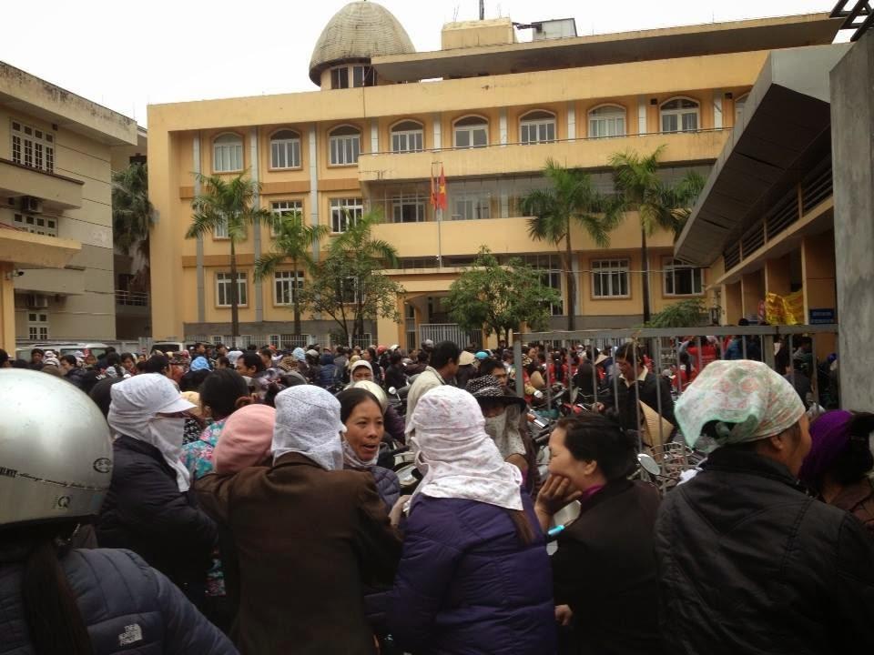 Nhóm hai đông hơn, khoảng 800 người đang tràn ra đường như một đàn châu chấu khổng lồ chặn hết các ngả đường khiến giao thông tắc nghẽn. Cả một rừng khẩu hiệu được căng ra , từ góc độ cá nhân như bà Đinh Thị Hòa Bắc Giang (theo kiện 22 năm ), Trần Ngọc Anh (Vũng Tàu -21 năm), chị Đặng thị Thông (Thái Bình-29 năm ), Nguyễn thị Tư ( Bình Thuận- 11 năm) v.v đến các tập thể , đơn vị, làng xã...Khẩu hiệu lớn nhất đập vào mắt mọi người là: