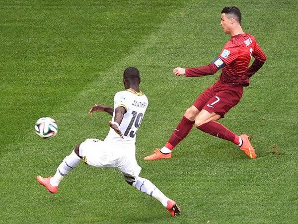 Phút thứ 6: Ronaldo đã khiến khung thành của Ghana trao đảo với cú sút chạm xà ngang.