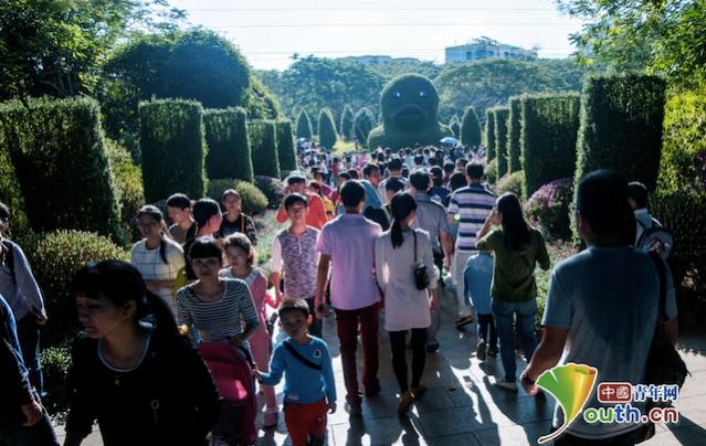Chú vịt khổng lồ trong triển lãm hoa cúc Shenzhen tại Thượng Hải được đám đông du khách chụp ảnh rất nhiều.