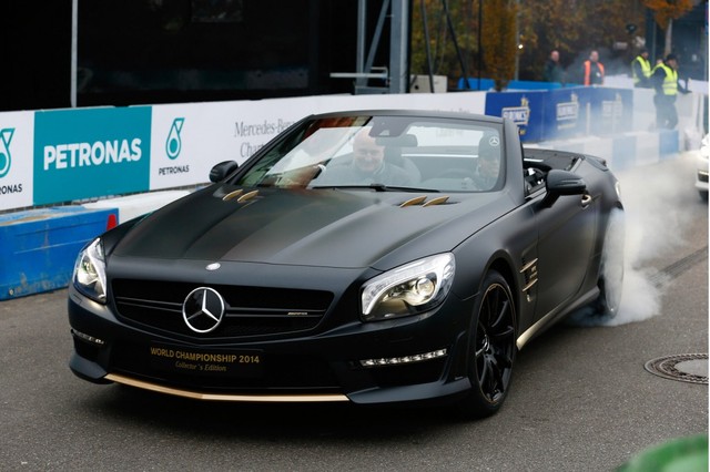 Hai chiếc SL63 AMG phiên bản đặc biệt có tên là World Championship 2014 Collector's Edition, mỗi phiên bản sẽ chỉ có 19 chiếc xuất xưởng, đại diện cho số chặng đua diễn ra trong mùa giải năm nay. Mỗi chiếc xe xuất xưởng cũng sẽ được đánh số, tên và cung đường của các đường đua. chiếc SL63 AMG màu trắng của Rosberg còn có chứ ký của anh ở bảng táp lô.