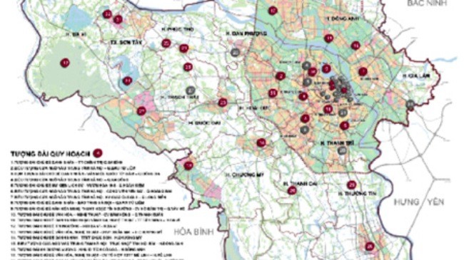 Bản đồ quy hoạch tượng đài của thành phố Hà Nội đến năm 2020, định hướng đến 2030.