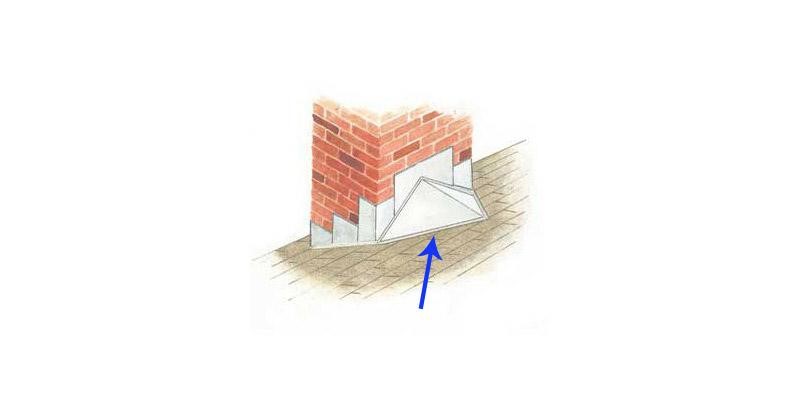 Một cấu trúc trên một mái nhà dốc, được thiết kế để hứng nước mưa xung quanh một vật cản như một ống khói.