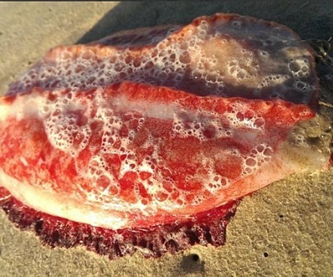 Hôm 25/08 vừa qua, Debbie Higgs một cư dân địa phương vùng biển Mudjimba, Sunshine, Australia đã phát hiện một loài sinh vật kỳ quái có cơ thể đỏ như máu và có bọt biển.