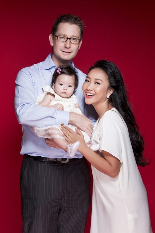 Cô bé Sol đã được khoảng 9 tháng, nặng gần 9kg. Con gái hoàn toàn giống ba ở cái miệng và khuôn mặt nhưng là phiên bản châu Á, chắc do gen châu Á của tôi trội hơn, (Cười). Tóc bé đã dài, màu đen, nước da trắng nõn giống bố. Lúc chưa sinh con, ông xã cứ mong con gái sinh ra có làn da ngăm giống mẹ, nhưng giờ tôi thấy hai mẹ con có da trái ngược nhau là tôi khoái lắm.