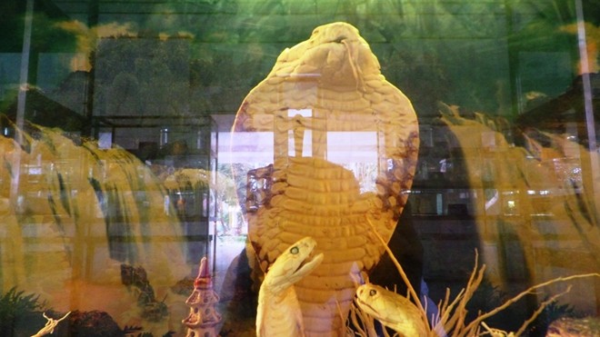 Hiện xác hổ mang chúa này được đặt trang trọng ngay cửa chính của bảo tàng rắn đầu tiên của Việt Nam.