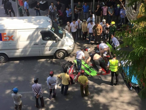 Tây ba lô không đội mũ bảo hiểm, đi xe máy vào đường ngược chiều và bị tai nạn.